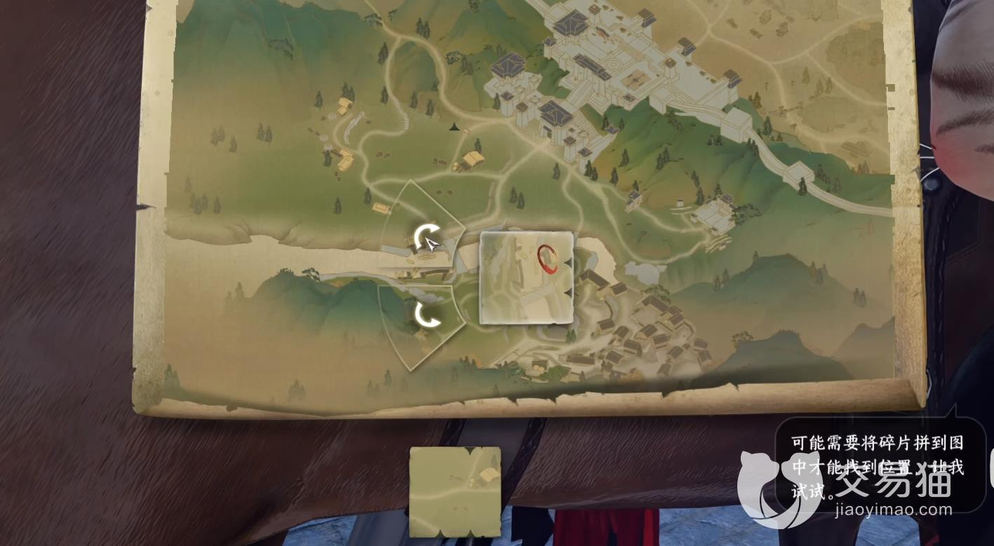 进入靖边神庙后,可以见到一座雕像。这座雕像的双眼空洞,看不到眼球。玩家必须做一些特殊的动作,才能得到眼球,然后把它放到雕像上。特别是,你必须用“捡起”这个行动,才能得到雕像的眼球。此行动一般由敲击雕像之眼而触发。拿到眼球之后,要做的就是“镶嵌”,然后把眼球镶嵌到雕像上。当你做完这一切,你就可以得到一幅地图了。