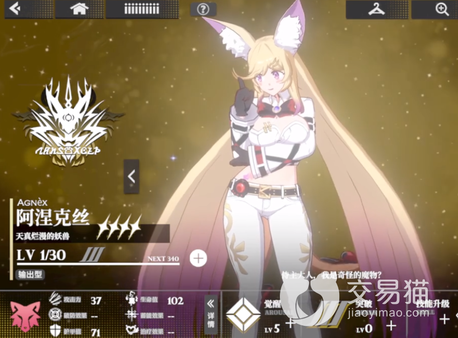 她的定位是四星输出型星痕,初始属性数值:攻击力37、生命值102、护甲值71,作为4星的输出,阿涅克丝基础攻击力不高,但是她能够以技能机制弥补这个缺点。
