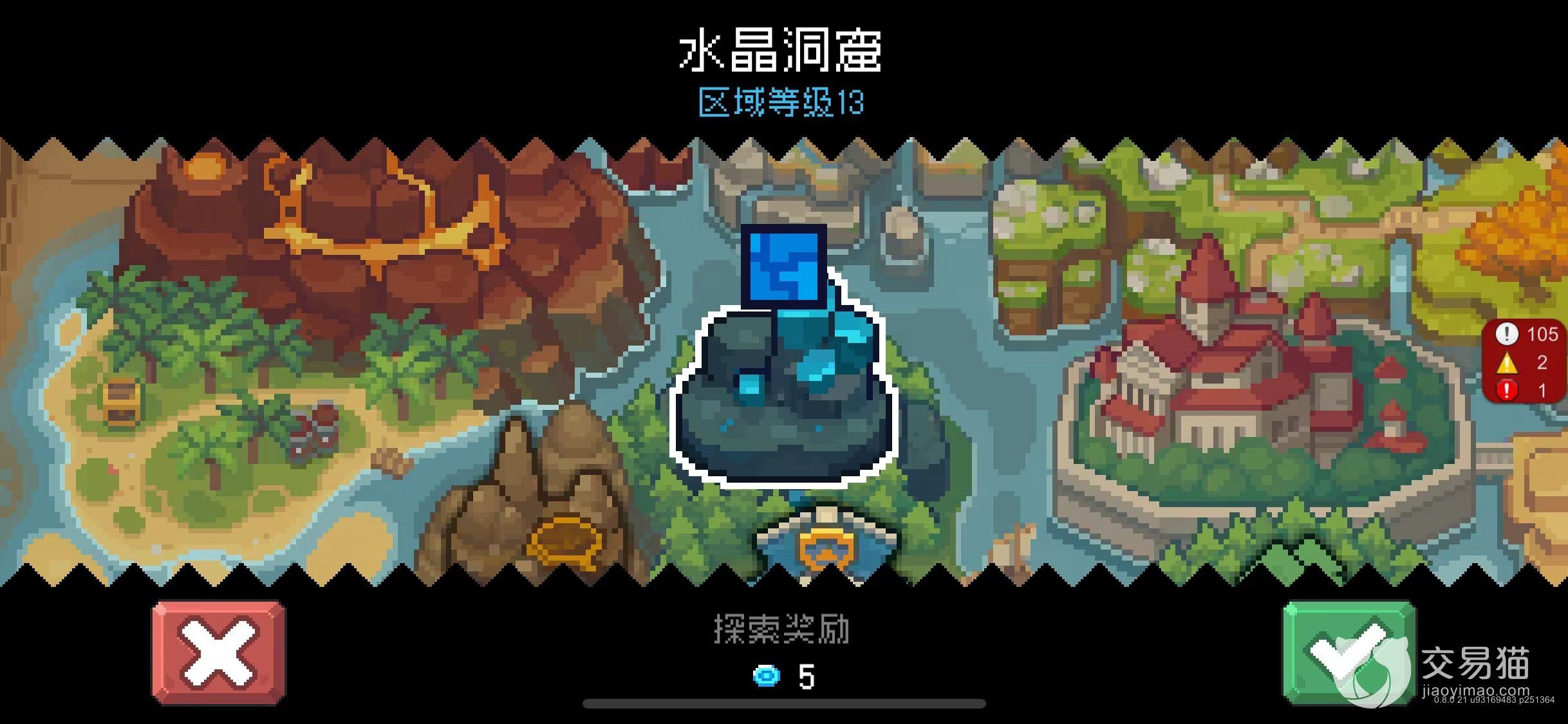 水晶洞窟:该区域处在一个矿洞之中,其中分布着很多哥布林矿工以及矿洞版的史莱姆,到达矿洞尽头之后你会见到这里的boss水晶巨蟹,它可以在多个角度释放蓝色激光,同时还能够发射多道火球,技能范围非常之广,同时它本身还有主动防御能力可以吸收大量伤害。