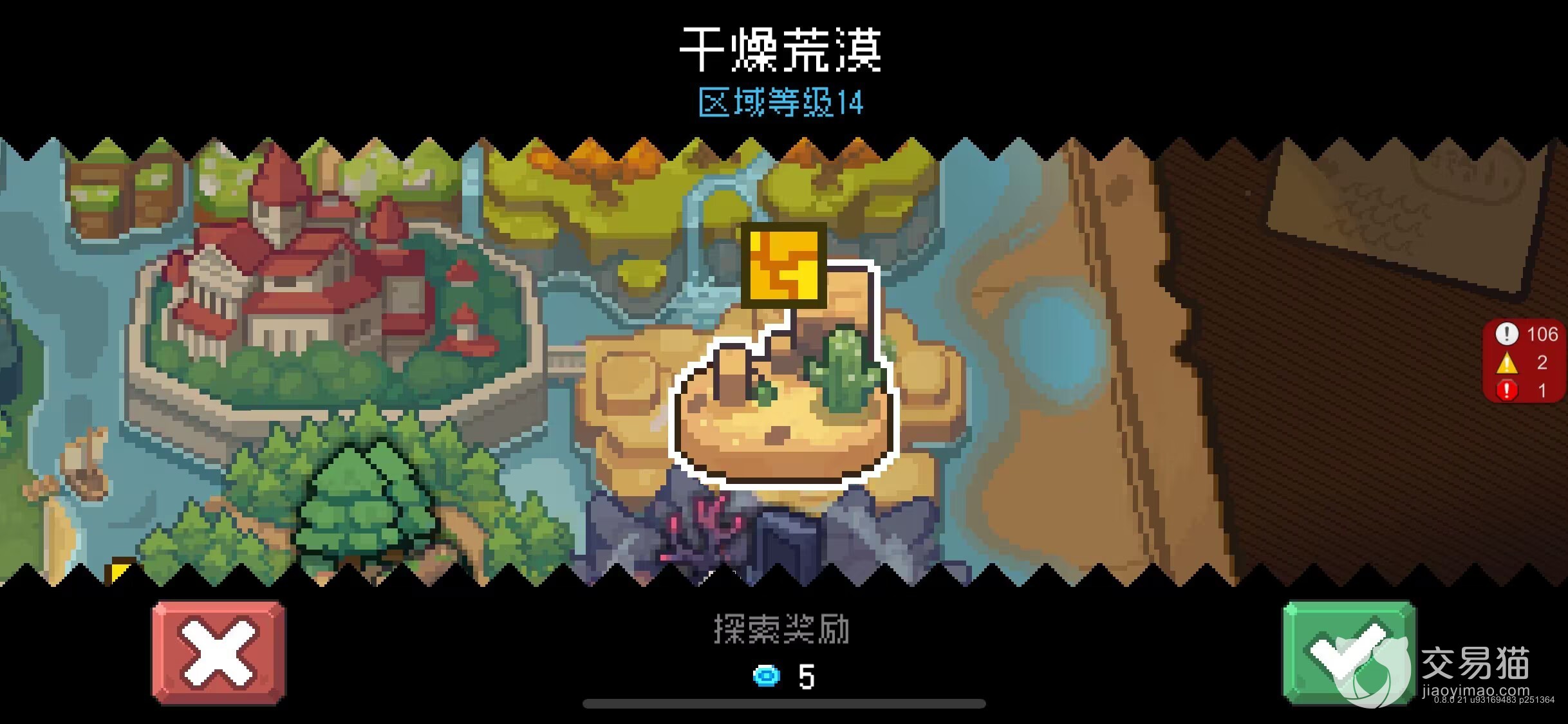 干燥荒漠:这个区域是一片干燥的沙漠地带,里面的小怪有木乃伊,豺狼和蝎子,其中的boss是一只能够遁地的沙虫,它可以召唤滚石进行范围打击,也可以潜入地下,然后出其不意的攻击玩家。