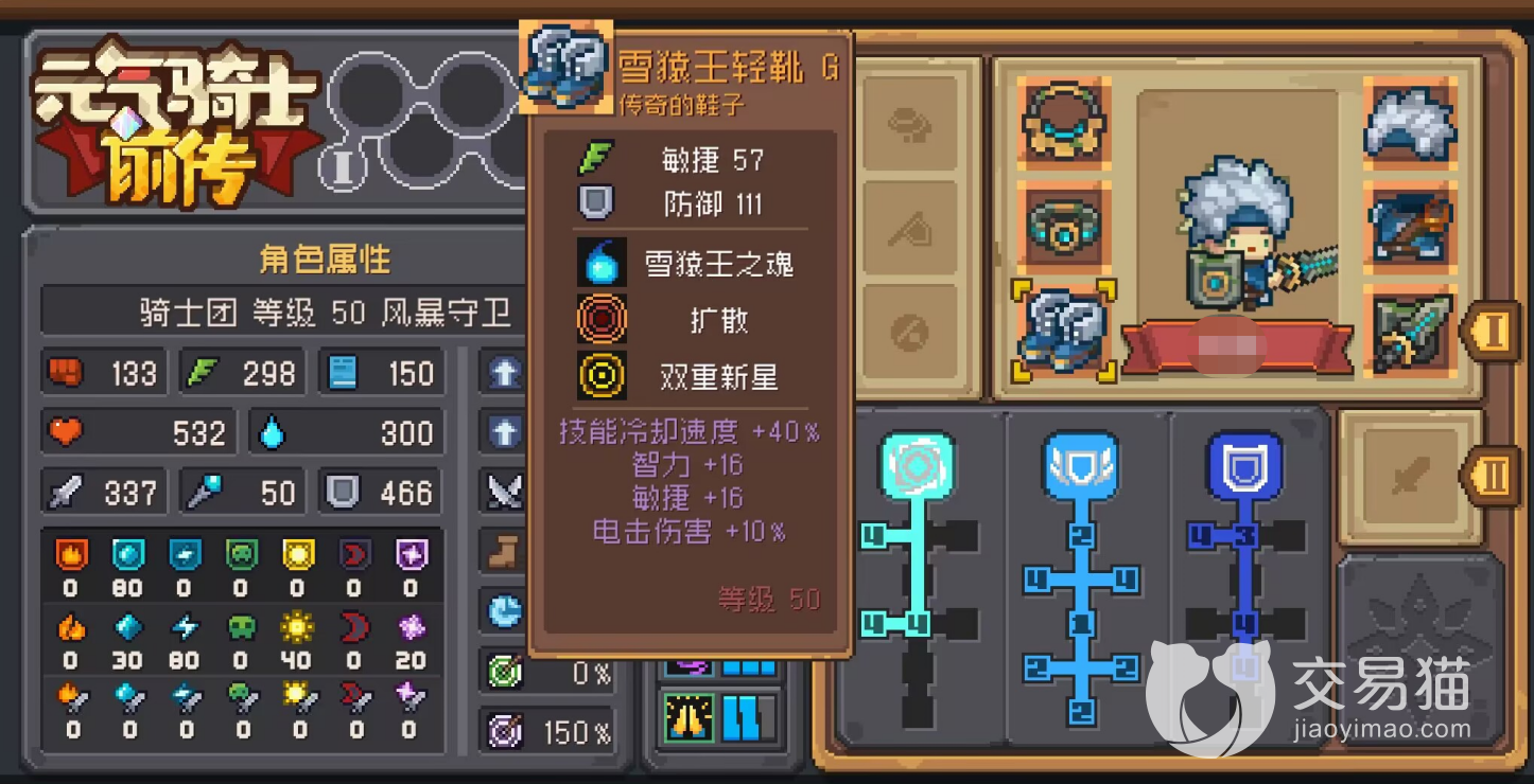 雪猿王轻靴G:这个鞋子的基础敏捷与防御也达到了大部分传说鞋应有的57和111,另外在能力方面,雪猿王之魂可以令玩家在攻击时施放寒气以及造成AOE伤害,对于单体职业来说是一个很好的补强。而扩散则能够则能够提升你近战攻击和AOE技能的范围,有了它之后再也不怕被拉扯。至于双重新星则是增加爆炸伤害的触发次数,玩家角色的AOE爆发能力因此得到进一步增强。
