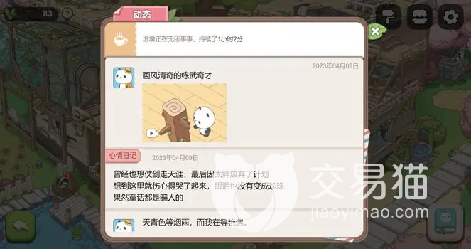 熊猫出游主要分成两个副本一个是熊猫订单,一个是出游,在装满订单箱子后,熊猫才会选择出门游玩,如果箱子没有装满的话熊猫是一定不会出门的。熊猫在出门游玩的时候,会进行打卡拍照,记录一些遇到的事情,还会发表各种日记、比如旅游照片或者视频等,玩家们可以点击右下角的日记本来进行查看,去了解熊猫此刻心情也是非常不错的哦。