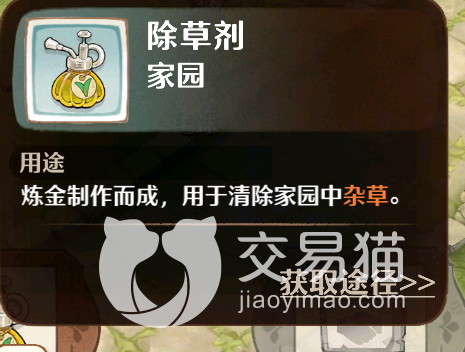 除草剂在刚解锁家园的时候,系统会赠送给玩家5瓶除草剂,每瓶的除草剂对应的可以消除一个格子的杂草。玩家们如果除草剂用完的话,可以在主城里看看是否有玩家的炼金炉存在,如果有的话,可以带好材料区炼金炉进行炼制。