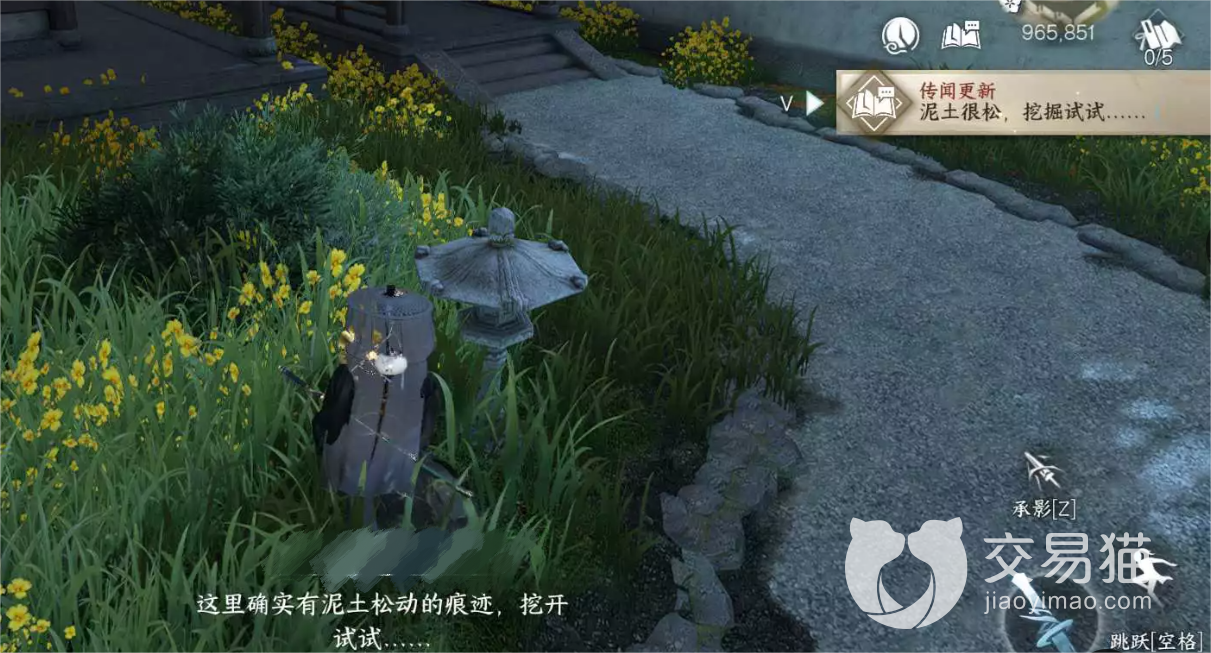 2、对话结束后,玩家便需要去往汴京(965,851),只有在下雨天前去,系统才会提醒玩家泥土很松,挖掘试试,此时此刻使用探险动作”挖掘“便可获得“剑门秘籍”。