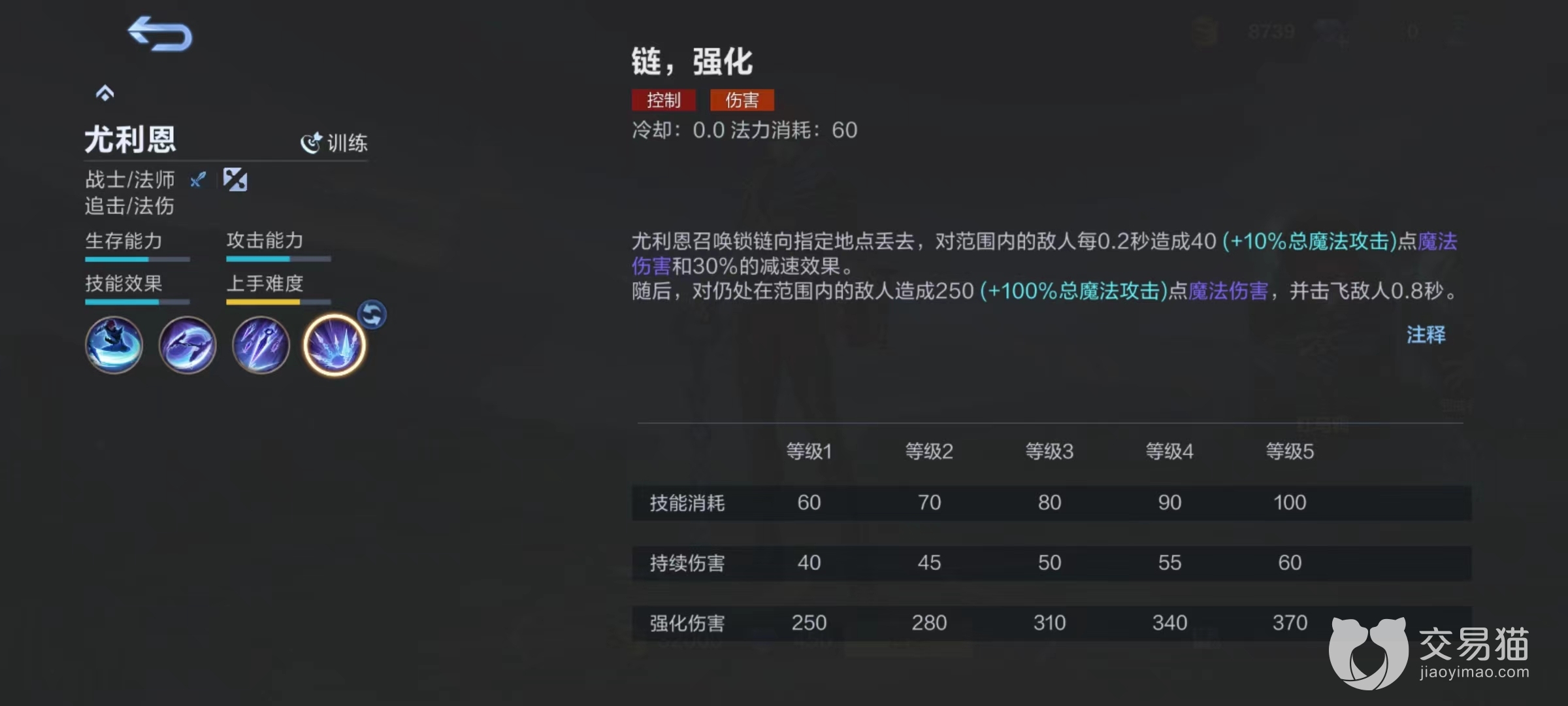 强化后二技能召唤更多飞剑,期间不可被选中,对路径上敌人造成持续多次伤害,短暂延迟后尤利恩会出现在最远处。强化后三技能为向指定地点丢去后,直接对范围内敌人造成多次魔法伤害和减速,随后仍然处于技能范围内的敌人造成伤害和击飞。