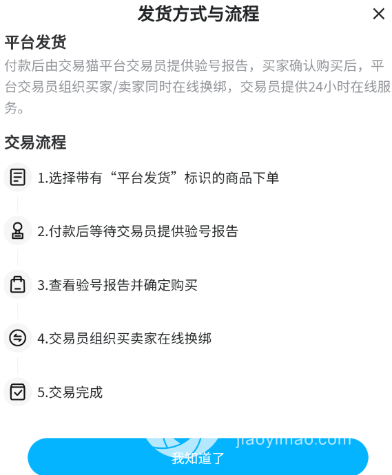 3、平台发货,安全省心。很多有卖号想法的用户平时没空看平台消息,担心会错过交易。而到交易猫平台上面卖账号就无顾虑,平台有24h在线客服帮卖家发货,如果买家提出要验号也是由平台协助,账号成功出售后还会提醒买家尽快确认收货,卖家出号更为省心。