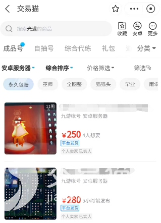 1、账号交易种类齐全,买卖号自由。在交易猫上搜索光遇,进入专属的游戏专区,大家可以看到有光遇成品号、开局号、游戏道具以及代练服务等,满足你出号的不同需求,同时也能让买家快速找到心仪账号。而且支持光遇的不同渠道、区服账号出售,用户上传商品时可以自选好分区,上传多张真实游戏截图,再配搭上交易猫海量活跃光遇用户流量,让对号感兴趣的买家快速相中你。