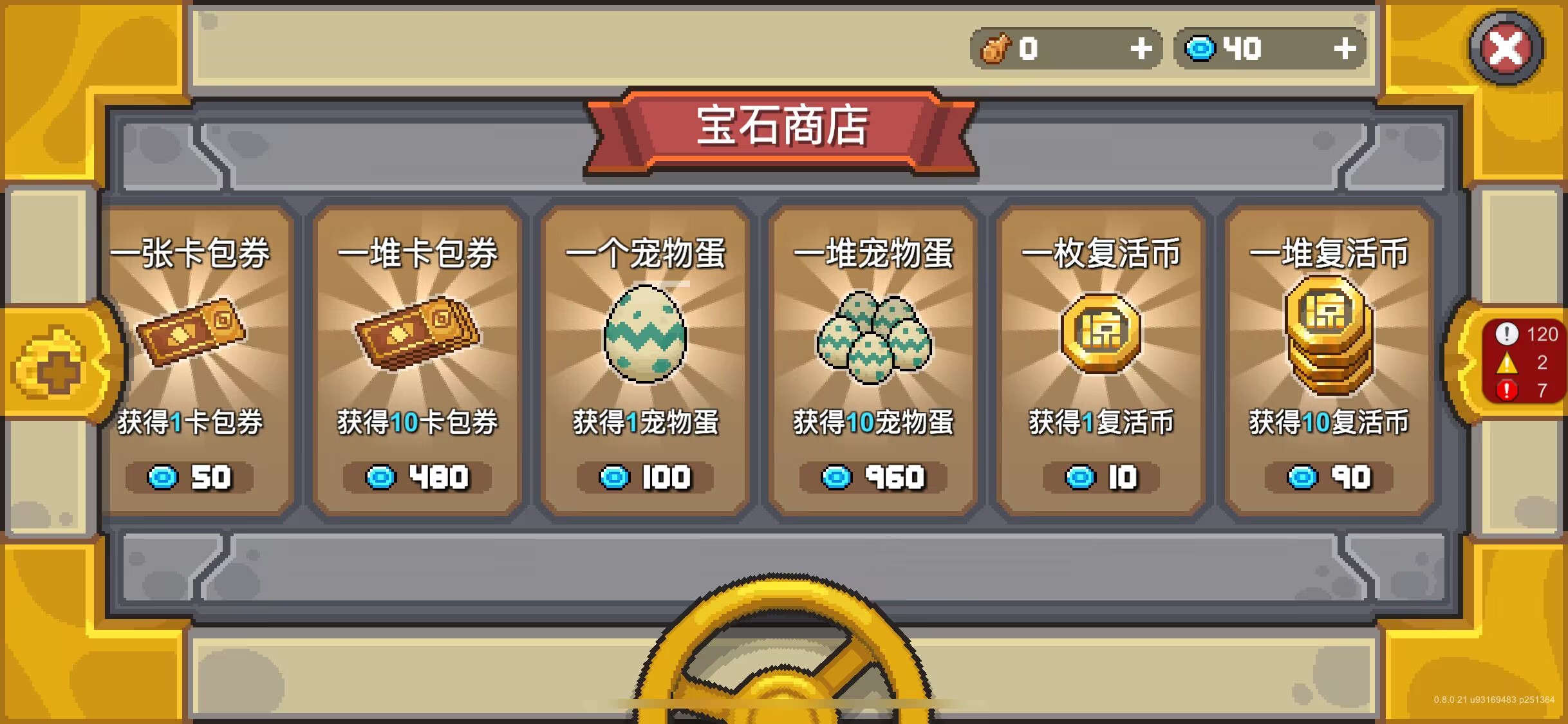 其中卡包能提供随机的卡片,这些卡片对于在副本中刷不出怪物卡的非酋玩家是一个福音,然后宠物蛋则可以孵化随机的宠物,这些宠物能够在实战中帮你输出和吸收部分火力,然后复活币则可以帮助你在面对强大boss时获得更多容错。