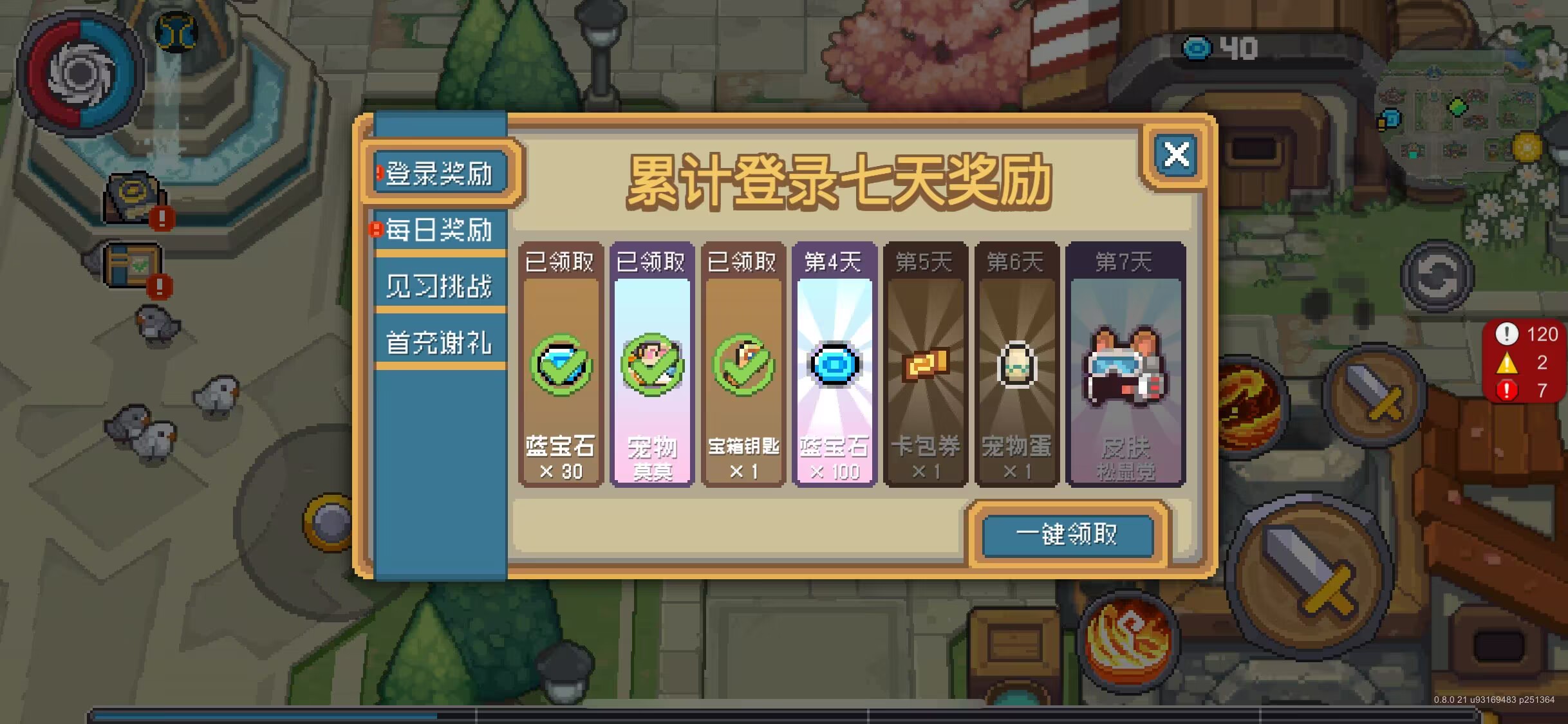 获取蓝币的方式主要有四种,第一种是通过累计登录进行领取,前七天登录的时候会有着各种丰厚奖励,其中第一天和第四天登录的时候会分别给予30蓝币和100蓝币,这些对于玩家来说是一个极大的补充,毕竟该货币在游戏内的单次获取,很少能达到这么高的数额。