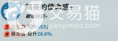 其次是被动技能【精英的使命感】,为下江小春【泳装】带来的是14.%-26.6%的暴击值提升效果。