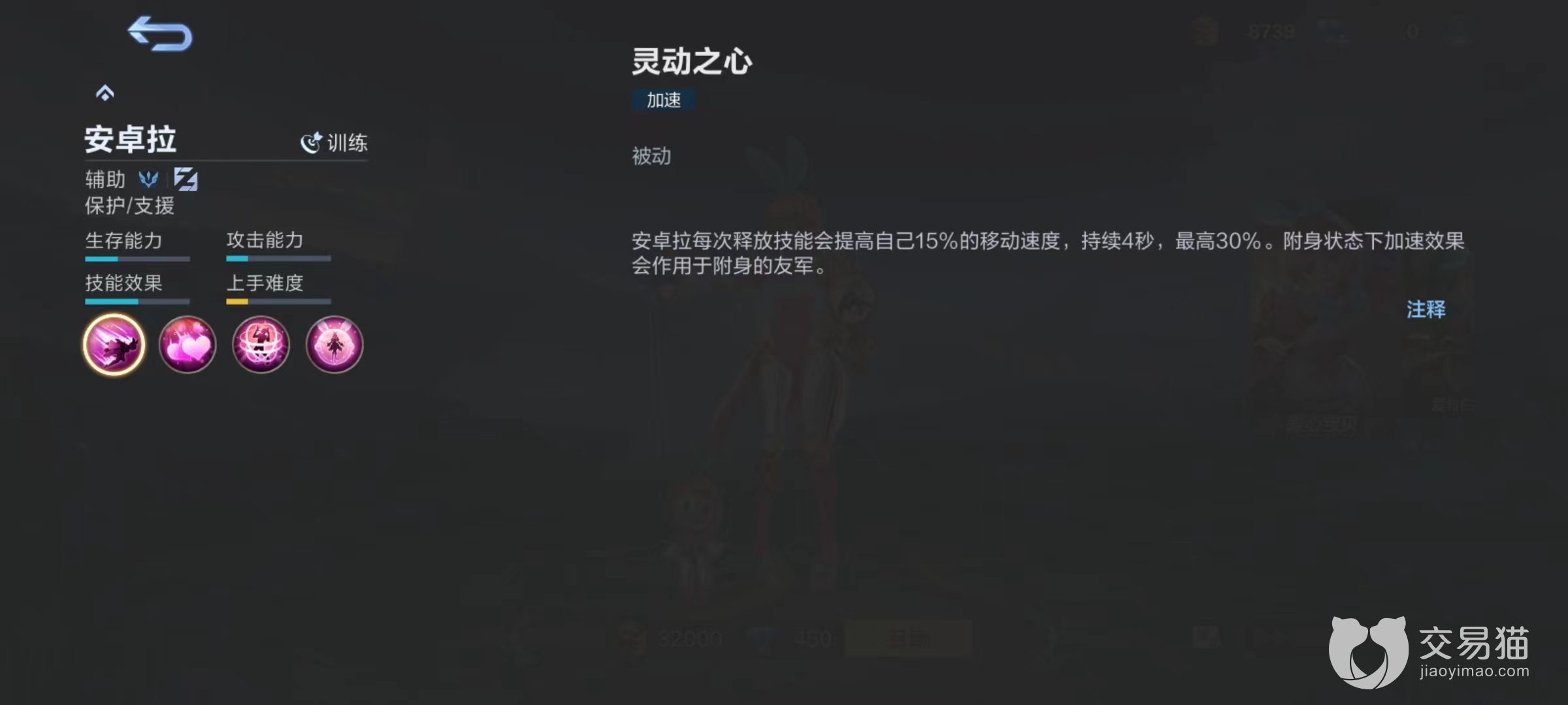 之心安卓拉每次释放技能都会提高自身15%,移动速度持续4秒钟,最多能叠加到30%,如果在附身状态下加速效果则会作用于附身的友军。能够提高速度的在游戏中都是非常关键的效果,因为速度是目前最有效的属性,比防御进攻以及生命值都要重要,越是操作熟练的玩家越能感受速度的关键。