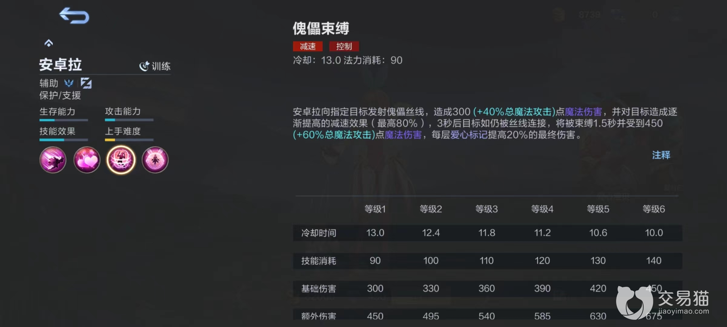 二技能傀儡束缚,向指定目标发射傀儡丝线,造成伤害后逐渐提高减速效果,三秒后如果目标依然没有挣脱连接,则被束缚1.5秒钟,并受到一次更高魔法伤害。目标身上带有的爱心标记将会提高最终伤害比例,每层能提高百分之二十,所以当对方身上层数足够多了以后,可以立即接上二技能并且利用自身被动所带来的速度上的优势,黏住对方,将整个技能效果全部打出。