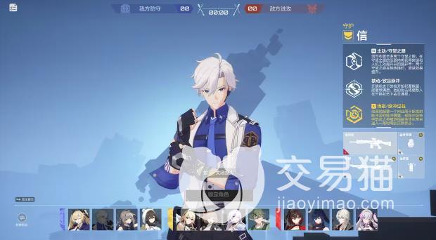 第三位男性角色是防守角色——信,这个角色同样是狙击角色,虽然单体伤害与前两个相比较低,但是可以连狙而且技能释放的信标拥有保证、回复、加速等效果,比较万金油,是一个防守方非常强力的角色。