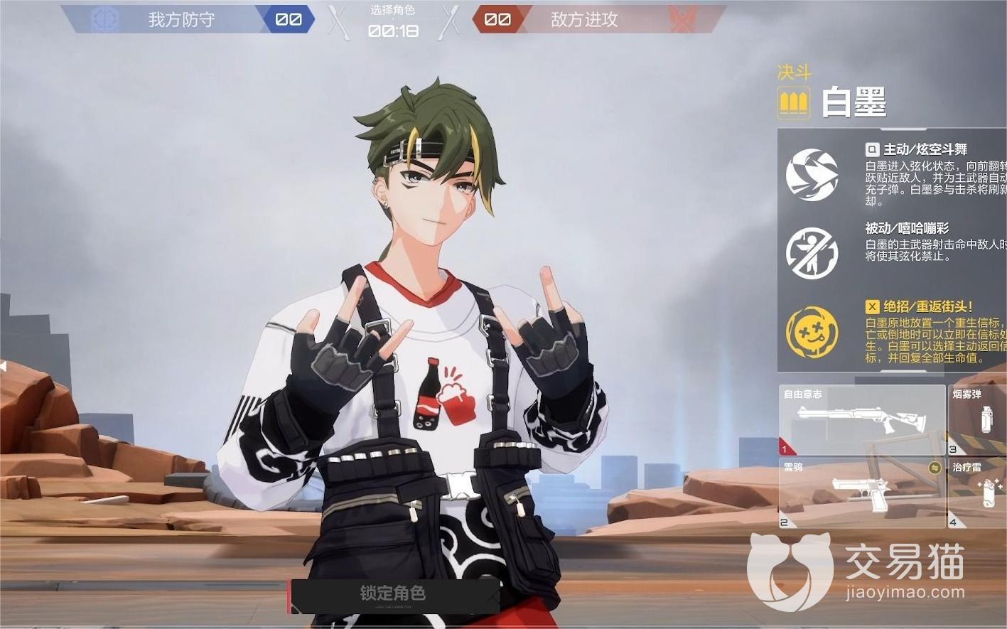 第二名男性角色是邻家男孩——白墨,这个角色游戏定位属于“喷子”,有着强大的连喷和收割能力,在击杀敌方后会使得白墨的部分技能刷新冷却,单体伤害极高,属于通用角色,而且技能可以设定复活之地,时候立即复活满血。