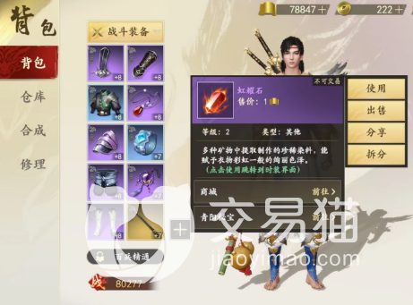 因为在游戏中大家是可以自己制作衣服的,而做衣服除了在款式上面可以选择之外,还可以为已经设计好的衣服进行染色,染色需要用到的道具就是这个虹耀石,一般大家想要什么颜色需要提前看看自己解锁了什么颜色,因为虹耀石并不是单一的固定颜色。