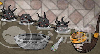 5,【爸爸的习惯】爸爸也不在吸食烟草了,现在抽的是由一个黑色的虫子进行加工的粉末,玩家们观察烟斗上的图案,玩家们需要把桌上四个黑色的虫子进行研磨,虫子上长满的触角,需要根据触角的多少对应烟斗上的图案进行研磨就可以了!