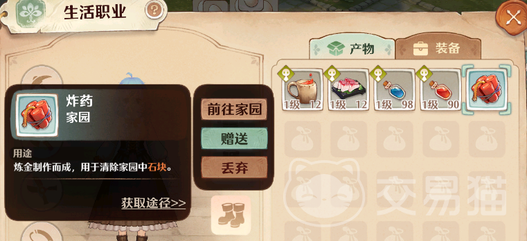 玩家们应该都比较熟悉游戏中的生活职业玩法吧,玩家们在游戏中可以学习一些特殊的生活技能来提升自己,炸弹主要是用于家园中,炸弹是需要玩家们学习炼金师职业来制造的,其他地方是没有办法获取的,玩家们进入家园后可以看到土地上有一些障碍物,比如石头,树桩以及杂草,如果玩家们不及时清理这些障碍物的话就没有办法摆放建筑了!