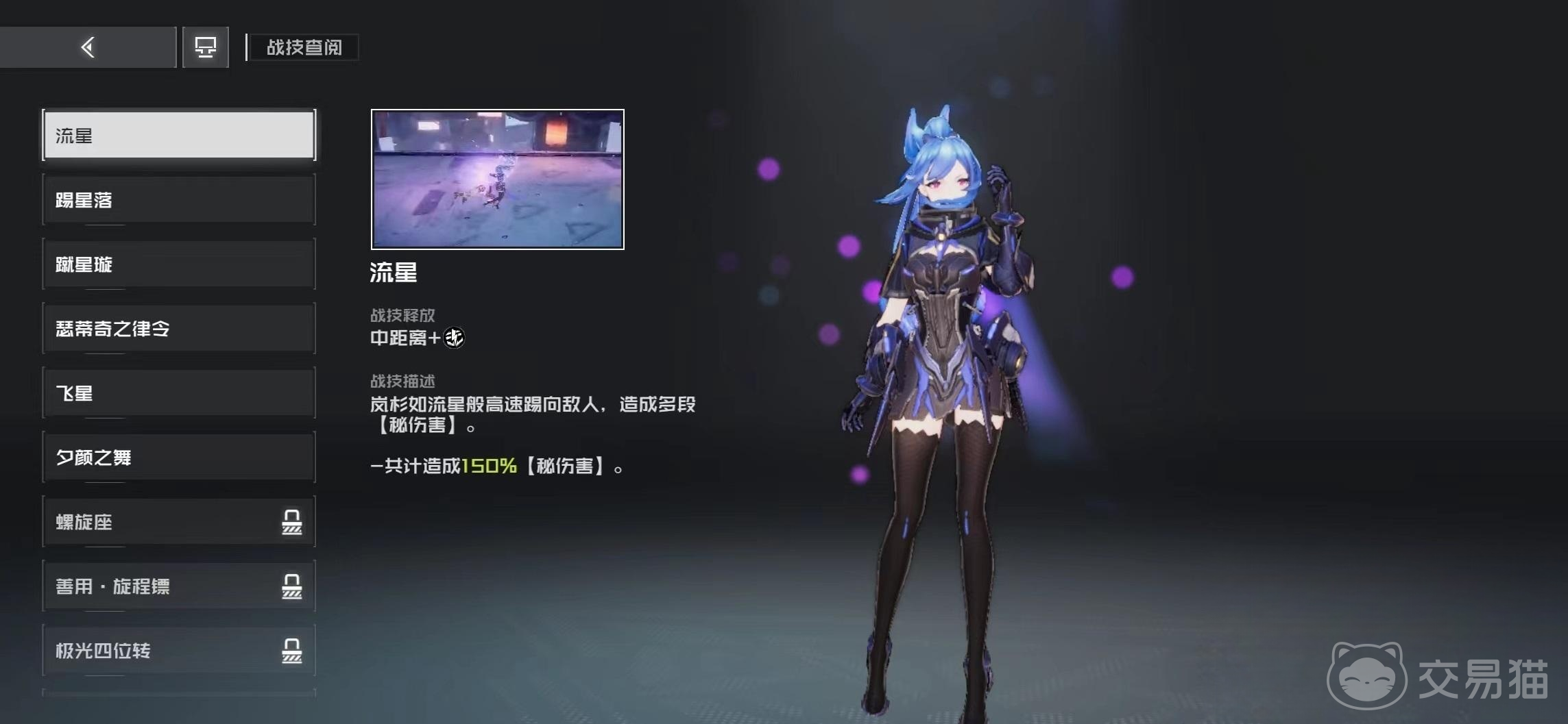 技能这块,其一技能名为“流星”,本身的施法距离为中,可以对单体敌人造成多段伤害,不过虽然攻击次数较多,但总伤害的加成比例只有150%,该技能作为较为常规的一种攻击手段,本身的属性还是不错的,毕竟有着中距离的施法范围,同时还有超过一倍的伤害加成,因此作为一个普通输出手段绝对已经达标。