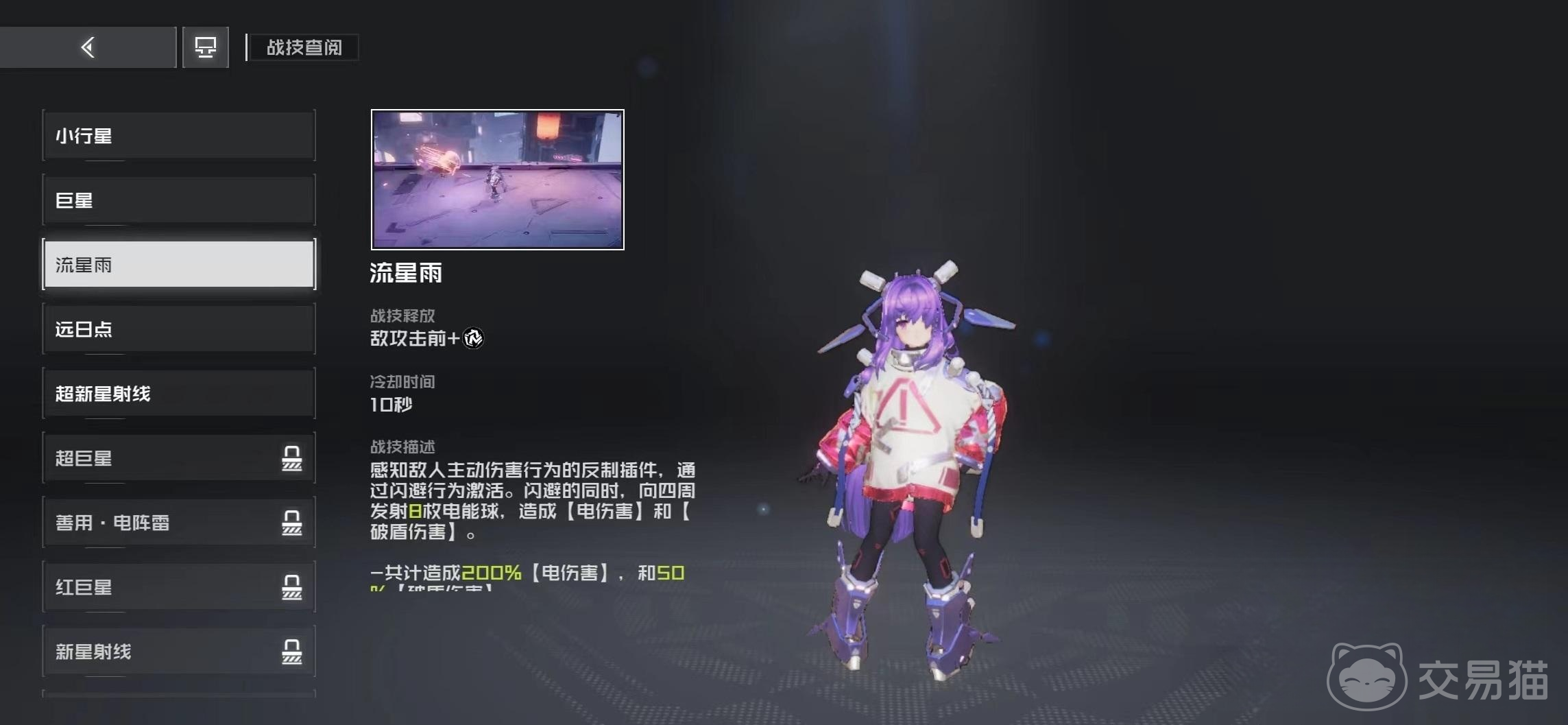 第二个技能是“流星雨”,这一技能需要抢在敌人攻击前进行施放,本身具有十秒钟的CD,它的性质更像是一个反制类的技能,只要闪避了敌人的攻击,便可顺势激活技能效果以此对周围发射“电能球”,这些电能球不仅可以造成高额的电伤害,还能对敌人的护盾进行额外创伤。