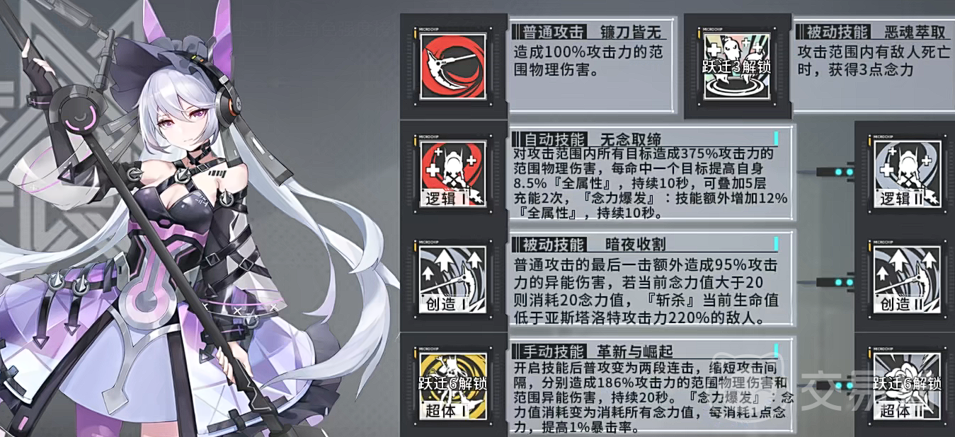 sr稀有度的战士角色,虽然基础面板素质方面,在一众战士角色当中比较的一般。凭借着其优秀的机制,属于sr当中也是非常好用的角色。玩家们没有抽到我们的镰亚斯塔洛特的话,可以用其作为下位替代使用。