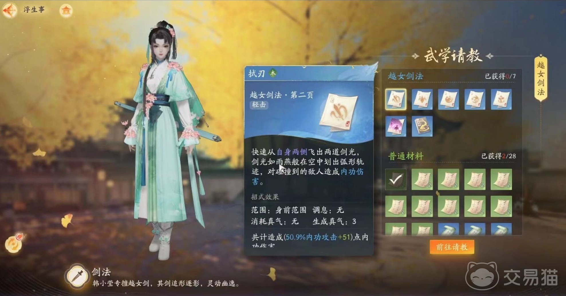 在重剑的技能上除了可以通过武学秘籍进行学习之外,也能通过向一些重要的角色请教来学习,比如说欧阳修和杨康等。通过浮生事图鉴功能可以了解到每个角色能传授的招式技能。通过和他们建立好感度的方式来向他们建立联系,达到一定好感度的时候就能利用拜帖来进行请教了,好感度越高能学习到的武学技能也就越多,当刷完所有的好高度基本上也能学完角色的全部剑招和招式。