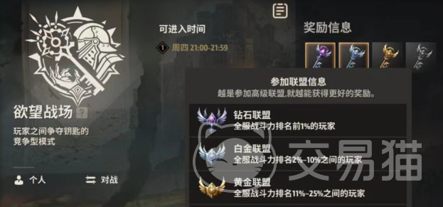不过因为在这个里面是有联盟匹配设定的,所以大家也不用担心自己的安全,如果被针对的话,大家可以邀请自己联盟其他的成员一起来进行迎战,想要参与的话,大家可以在每周四的时间关注一下这个活动,进入活动的时间是9点到10点中间的一个小时,所以大家一定要抓紧时间进入其中,一个玩家每个星期可以参与两次,每一次的战场里面都会有30名玩家进行对战,而联盟上面的话会分为不同的等级,白金、钻石、黄金等等,不同的联盟大家匹配到的对手都是跟自己能力差不多的,所以在对战斗的胜利概率上面是不可捉摸的。