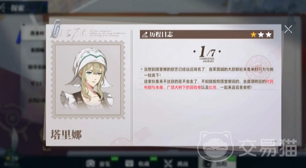 第一张地图是鲁米村,玩家以达高塔这个地方,才可以开启探索,到达之后还需要找到一个NPC进行对话,这次才可以完成该地图中的第一个探索点。第二个探索点是与冒险者进行对话,而最后一个探索点就是在餐厅中寻找一个NPC,全部完成之后,便可以获得强化券。