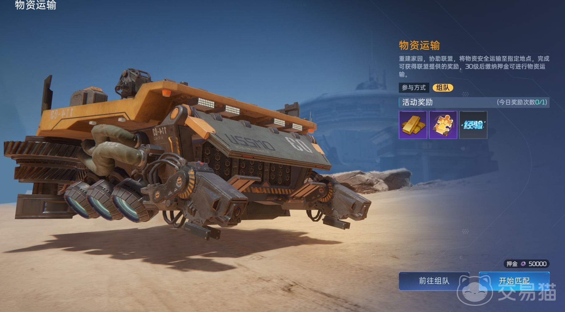 物资运输,协助联盟将物资安全运输至指定地点,玩家到30级后开放这一玩法,参与方式为组队并缴纳押金,失败不退还押金,完成将获得联盟提供的奖励,奖励内容有,金条、宠物召唤券碎片、经验。