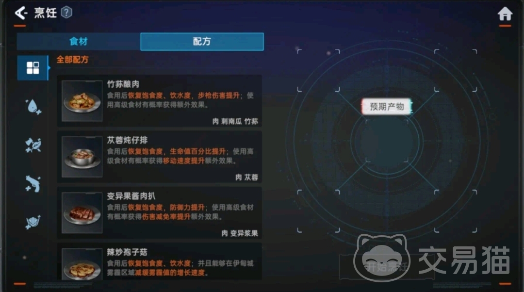 肉臊香菇酱:水、沙椒、香菇、肉。惊喜效果:提升对人类敌对势力伤害。