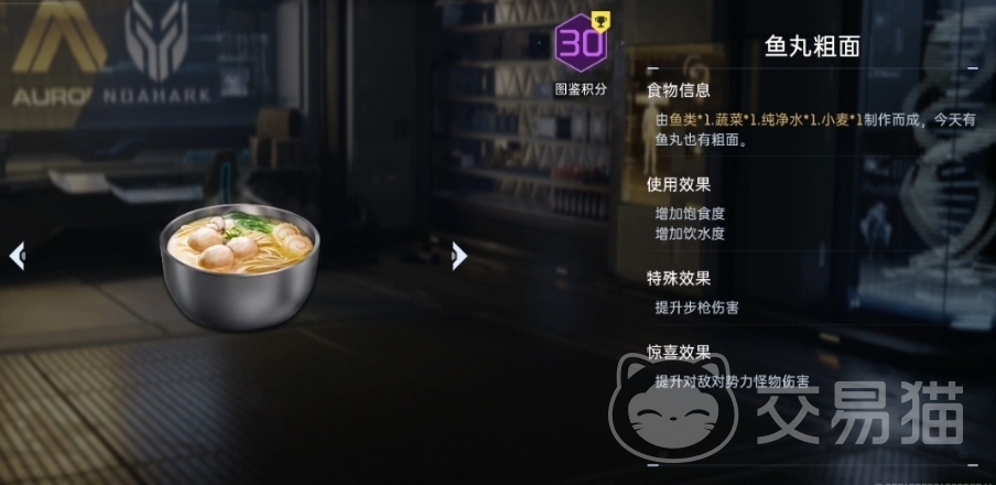 鱼丸粗面:水、蔬菜、小麦、鱼类。惊喜效果:提升对敌对势力怪物伤害。