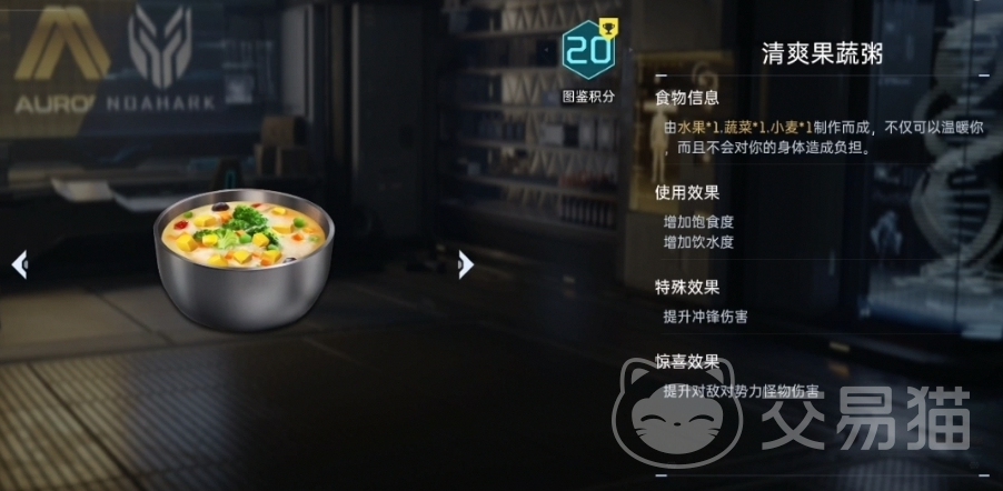 清爽蔬果粥:水果、蔬菜、小麦、小麦。惊喜效果:提升对敌对势力怪物伤害。