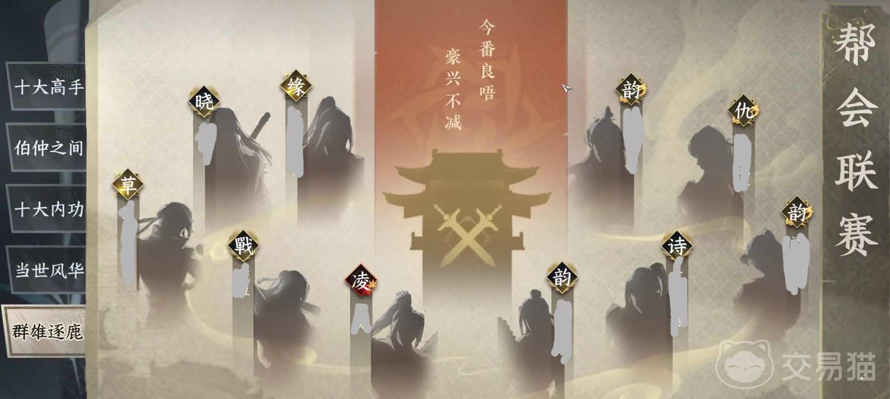 所谓的群雄逐鹿,也就是我们的帮会联赛排名名单。基本上各个分组的甲一帮会名单都会在这里进行了解和查看,从中排名前十的帮会会在这里进行一个公示。对一些单人转多人的大佬玩家而言,可以试的,找当中的帮会进行加入,能大幅度提升之后的玩家练度和属性成长。