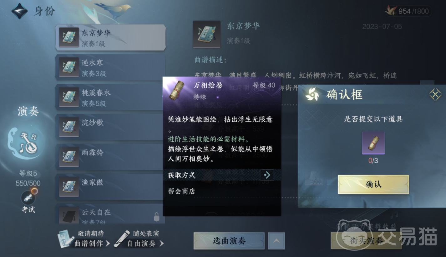 这个道具虽然写着是绘卷,但是玩家不能打开看里面的内容,它仅限于进阶生活技能。比如升级演奏身份,在选曲里面使用三个万象绘卷就能升一阶,可以说使用需求量非常大。