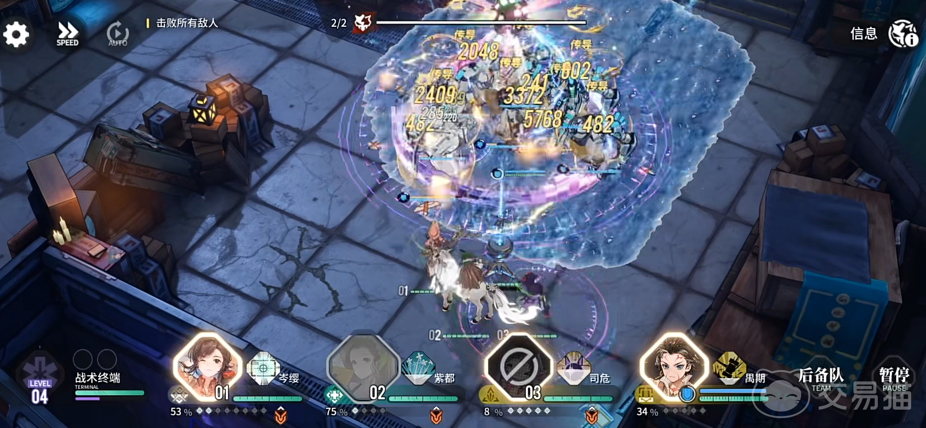 另外还有一点角色,一个队伍当中是可以分为两方队伍进行组成的。一个队伍,八个人前线上场四个人,后方后补四个人。后方的角色可以随时切换到前线战场上进行替换,而且在后方的角色是可以等待刷新大招的。如何合理的将后方休息好的角色调到前线进行辅助扛线,是玩好这个游戏的关键之一。