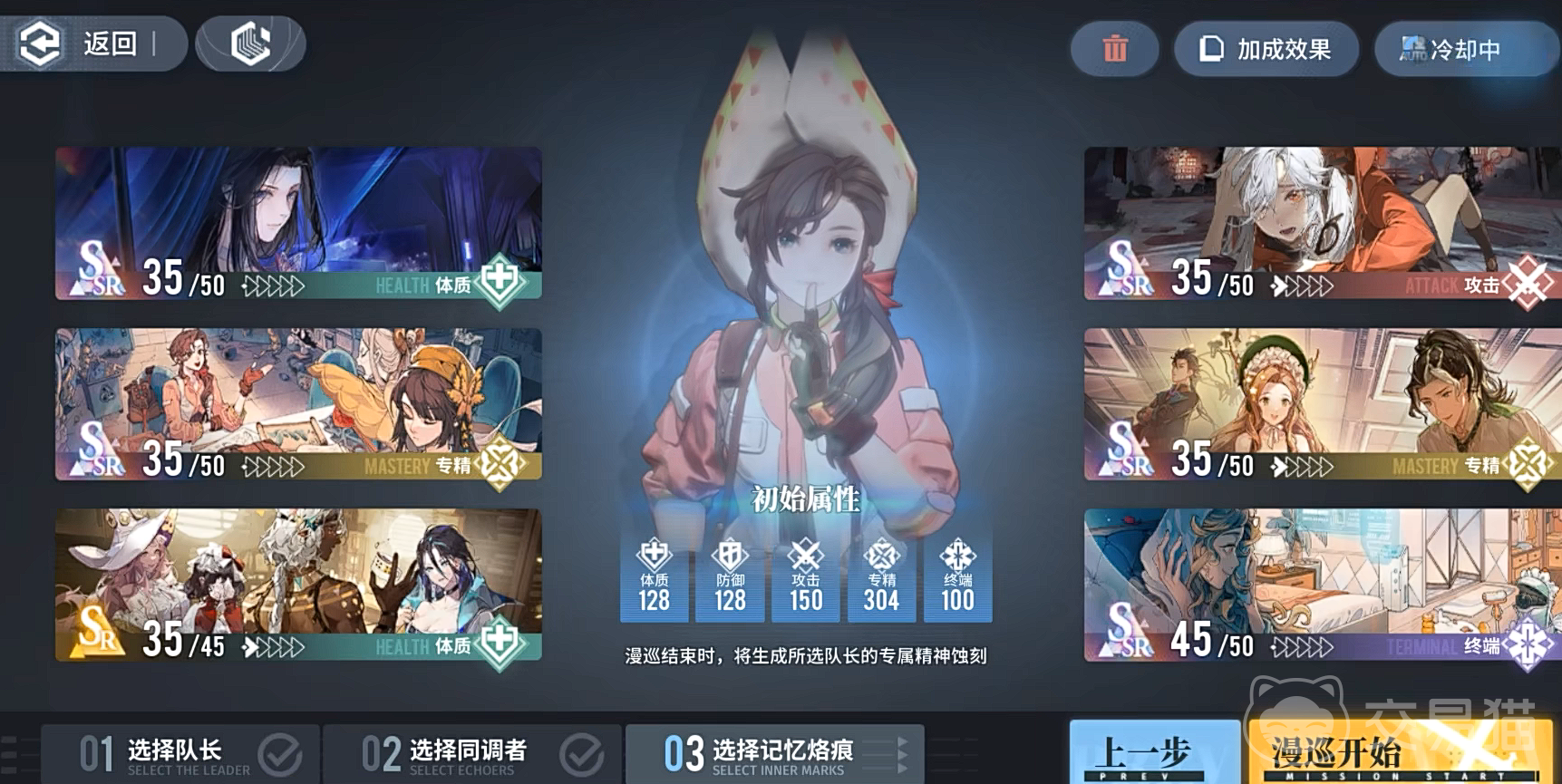 角色的养成方面也相比其他的角色进行了部分的简化,我们只需要选择一个角色作为队长,然后配置好我们的队员队伍,以及类似于团队礼装的记忆烙痕。并通过回廊漫寻这个类肉鸽的玩法结果,来确定它的最终战斗力。之后再用其队伍作为之后主线资源,周回等副本的挑战即可。