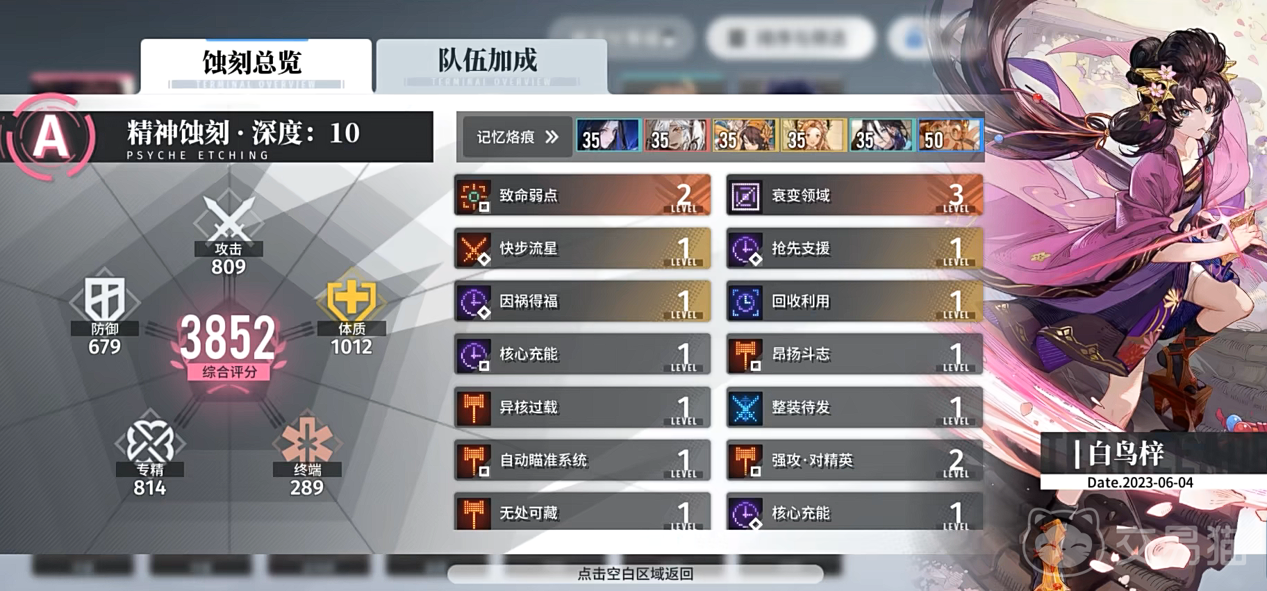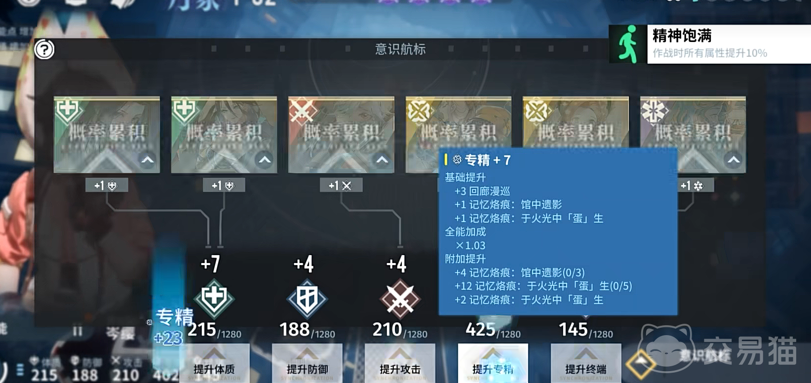 简单来说,整体的角色养成就是通过升级突破来决定一个角色的基础,然后再打肉鸽玩法的回廊漫巡获得精神蚀刻,得到具体数值方面的加成,再通过这个数值加成作用于全队配合组成队伍,打一般的主线副本。