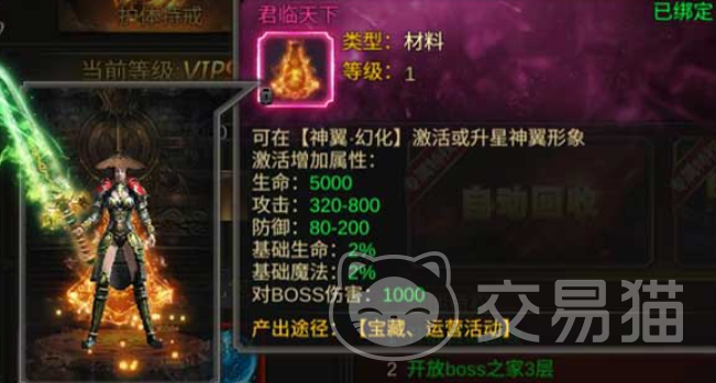 此外,就是开通即送的超爆幸运丹。使用之后将立即获得一次幸运超爆触发,玩家们的装备掉率达到一个匪夷所思的地步。基本上一颗丹药,甚至有可能就能解决玩家们前期装备掉落等等一系列刷装备方面的问题。