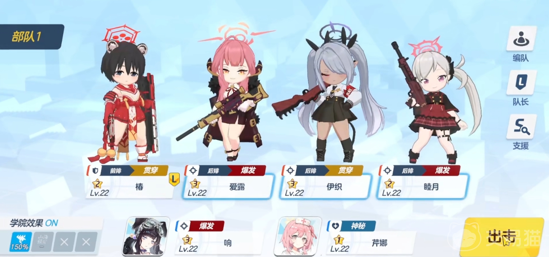 玩家的在游戏当中扮演的是三一综合学院中的一名老师,带领的学生就是要在游戏当中进行战斗的角色们了,点击学生图标,她们的左上角通常都有自己的ex技能特点,而图标下面则是目前的cost值,这一数值是用于发动该学生的ex技能来使用的。