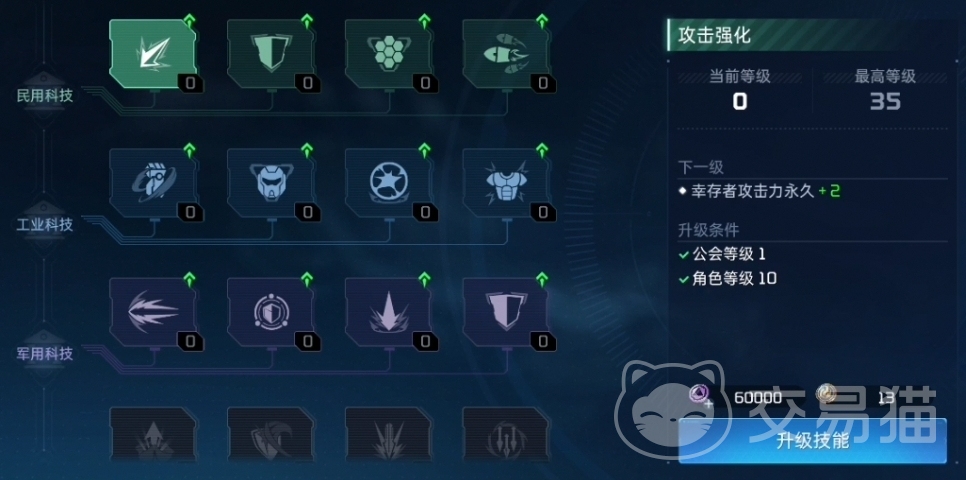 幸存者9级后可以选择创建或者加入公会。创建公会需要至少获得5个幸存者的响应,响应后公会会长可以进行成立公会的操作。幸存者加入公会后,可以使用公会频道聊天,参与公会的玩法和活动可以获得公会贡献,用于升级公会科技,科技将永久提升幸存者的战斗能力。
