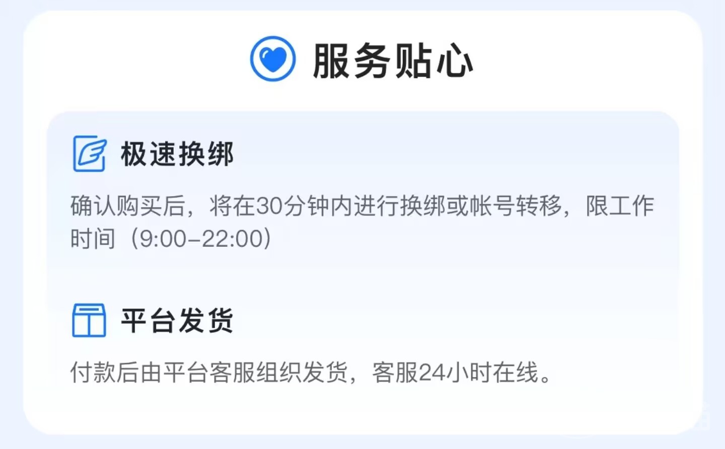 至于小编为什么推荐大家使用交易猫这个软件。那么小编先从卖家的角度介绍一下交易猫这款软件的特点。作为卖家,无论自己游戏账号的价值怎么样,都希望能够正常顺利的将自己的账号安全出售出去。对于一些价值比较高的账号更需要找靠谱的游戏账号交易平台,在交易猫上进行账号交易,大部分的买卖流程都会有在线儿的客服参与。从你成为卖家开始,客服就会一直服务到你将账号安全出售出去。交易中可不会协助账号的发货,在最短的时间内将账号成功转移到买家,并且买家急速付款,账号交易之后就不支持退货,这样卖家的收款以及后续的安全都会得到一些保障。