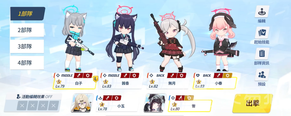 小编非常推荐的阵容是以泳装版本的小鸟游、陆八磨亚柳、浅黄和沙朗这四个角色组成的,可以再补充两个负责支援的角色,比如爱清风香和猫冢响,这样组合起来的阵容无论是在清怪这个方面,还是在爆照输出这个方面,能力都是非常强势的,很适合用来挑战情人节巡逻这个任务。