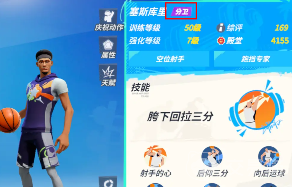 大家应该会注意到球员名字右边“位置”信息下的底色,比如说塞斯库里名字右边的“分卫”底色是紫色的,这里的紫色并不是稀有度,而是代表位置。中锋的是橘色底,大前锋是绿色底,小前锋是橙色底,分卫是紫色底,控卫则是蓝色底。