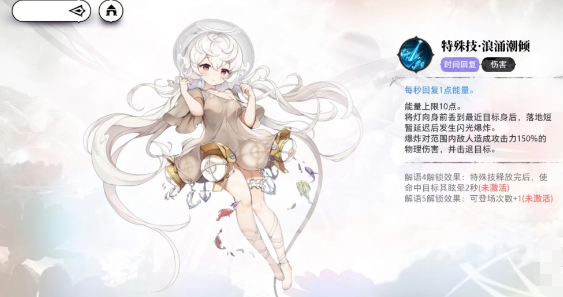 大家查看娜芙露丝属性面板的时候就会发现她是一个是可以带来水系技能的角色,她的普攻是一个单纯的物理伤害,这个技能在使用之后就会立刻发动,而且带来的效果是一个群体效果,选中的目标是对面的全部成员,她会召唤出来很多的船舰,船舰对对面的目标带来的效果就是高额的物理伤害,这个物理伤害是很多玩家原始数据上达不到的数值,所以娜芙露丝也是可以当做阵容里面的一个主要核心使用的。