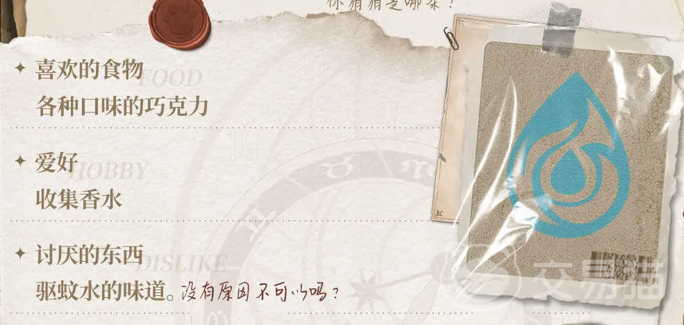 丘比特的职业就是夜骑士,最喜欢吃的就是巧克力,各种口味的他都喜欢。最讨厌的驱蚊水,就算夏天有蚊子都能忍住不买,待在有团人型蚊香的骑士团度过,很少出门。除了巧克力这种零食以外,丘比特还喜欢收集香水,也不知道是从何而来的爱好。