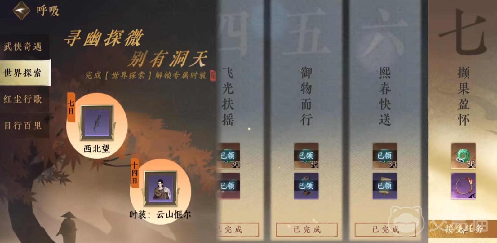 撷果盈怀是江湖探索世界任务最后一个任务,任务流程不长,但是要用到许多探索技能。那么逆水寒手游撷果盈怀怎么做呢?做完这个任务之后,可以获取一个称号,解锁云山惬尔时装。接下来小编给各位玩家带来逆水寒手游撷果盈怀任务攻略,想快点拿到奖励的玩家,就跟小编一起往下看看吧。