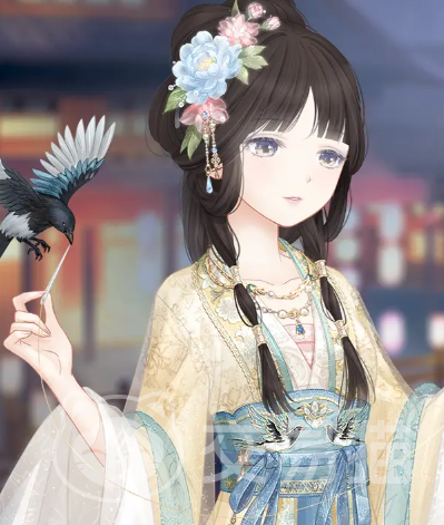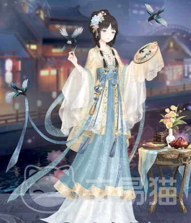 游戏中这套即将在七夕上线的新服装叫鹊落锦心,该服装从展示的立绘中来看是一套古风服装,这个古风服装的设计偏向唐风采用的是裙装设计,裙子上半身印有很好看的花纹,腰部有印有两只喜鹊。