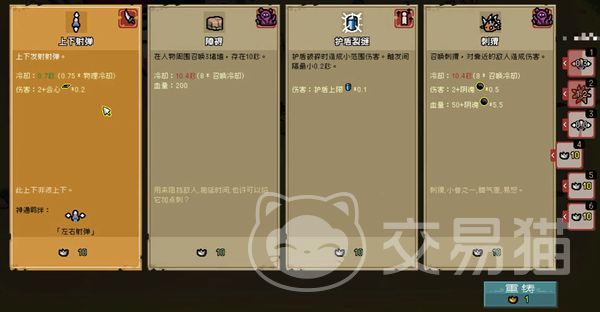大家可以将飞剑这个神通和寻魂剑放在一起,他俩的主要效果是增加攻击时候的穿透次数,组合完成之后就可以获得凡人剑术了。地刺可以将佩戴者的血量提高,障碍可以获得地刺的效果之外,同时还可以为其附着一层和障碍同等级的刺,两者结合可以获得防御科技。