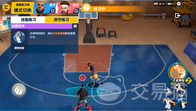 在正式开始今天的教学之前,首先需要各位了解技能按键在哪,以及什么时候能用:游戏中的技能按键通常是在右下方那一堆动作按键中最左边的那一个,各位在刚进入游戏的时候如果点击这个按键,那么通常是无法使用的,因为技能往往需要进行充能之后才可以试用,而各位如果想要为技能积蓄能量,那么就需要在场上积极做出各类动作,比如抢篮板、带球等等,通过这类动作会慢慢提升能量值,当然,如果各位什么也不做,那么能量值的增长就会十分缓慢。