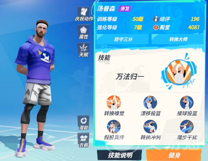 此外,他的一众小技能还能分别提供转身,冲撞等各种突破手段,一手后仰与集中三分则可以令其在绝境时创造出投篮空间,并追上比分。