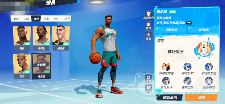 技能这块,他既可以通过爆发技来增加自己的高难度投篮能力,同时也可以利用强横的扣篮来完成各种暴力迅猛的终结,另外他的技能中还有着对篮板与防守方面的加持,这令其能够保障队伍的进攻下限,也在另一层面更好的限制对手的进攻。